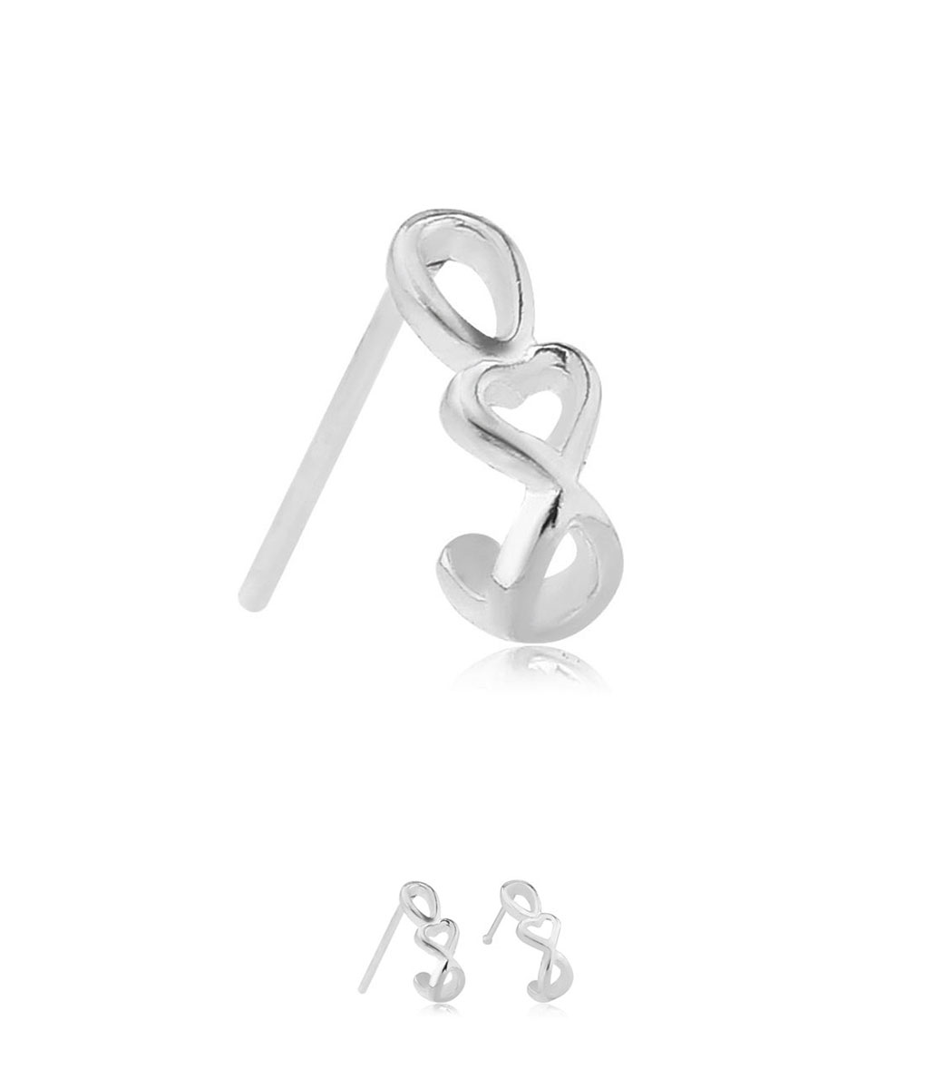 925 Sterling Silver nose hugger stud with a heart design that measures 4mmX11mm. The design wraps around the inside of the nostril.