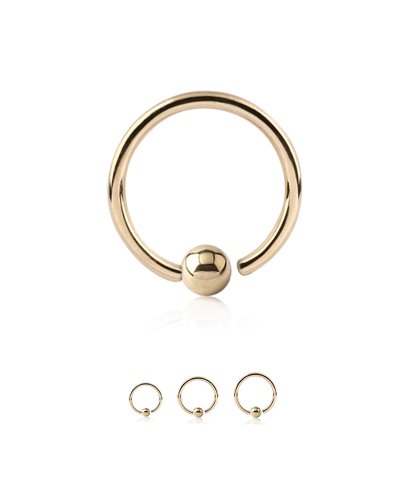 14KT Yellow Gold Fixed Captive Bead Nose Hoop