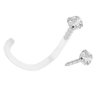 Bioflex is flexible, and is safe even for initial piercings. It is very easy to take in and out and is great for those that have sensitivities to other metals. The best part of all: it's comfortable! The top of the screw is 14KT Solid gold, with claws holding a gorgeous 1.5mm CZ. The bioplastic is not seen at all, it gives the impression that it is a complete solid gold screw but gives the comfort of Bioflex!!