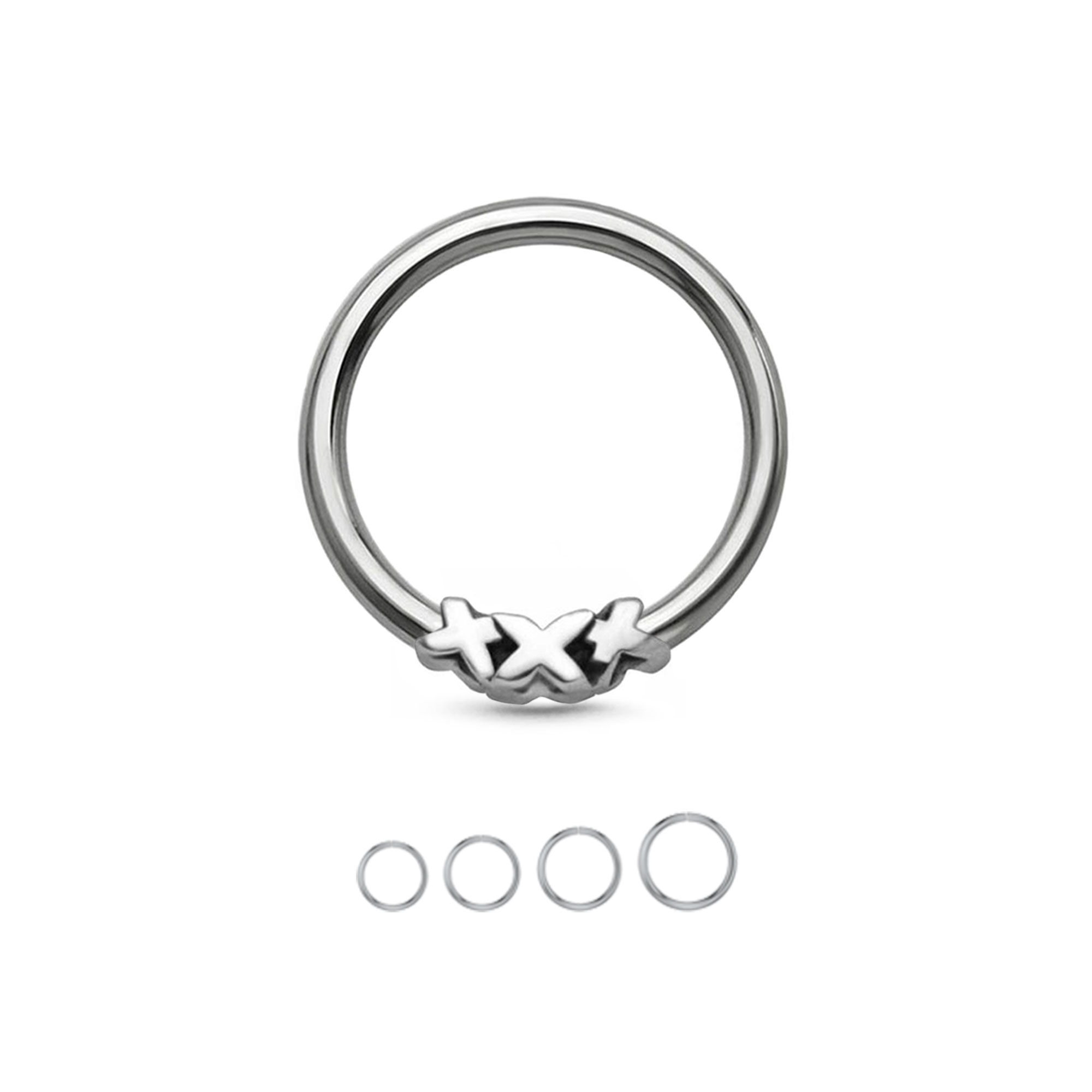 316L Surgical Steel or Titanium XXX Captive Bead Charm Nose Ring, Tragus, Ear Cartilage Hoop