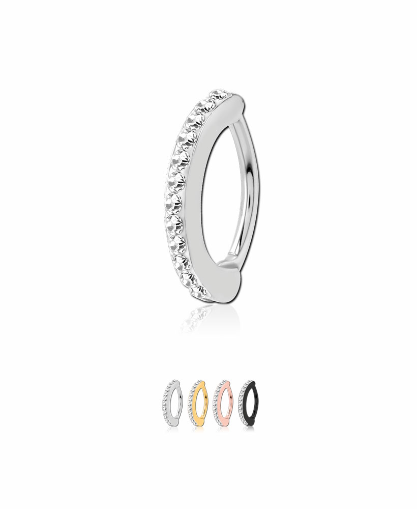 This clicker style navel ring has a 12 stone cz design for a unique look that will make a standout addition to your collection.