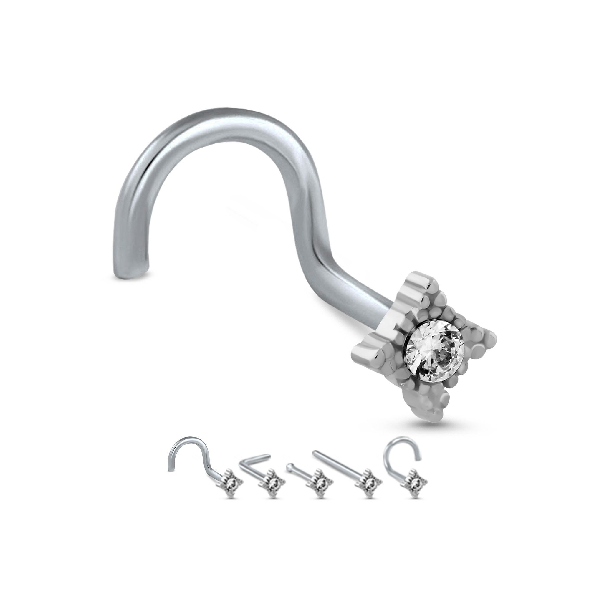 316L Surgical Steel nose stud featuring a diamond shape design with a clear center stone, available in your choice of style.