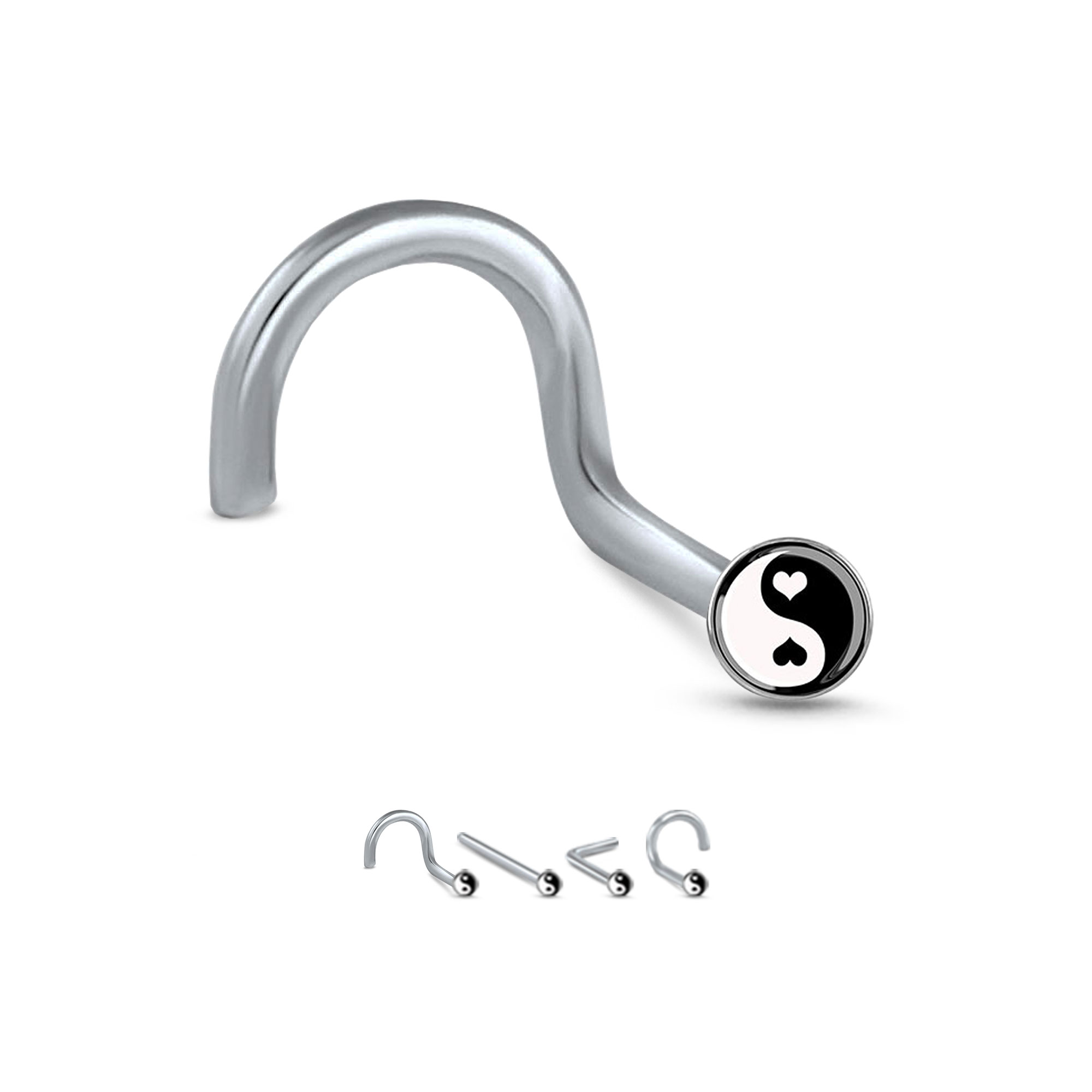 316L Surgical Steel nose stud with a 2mm yin yang design, available in your choice style.